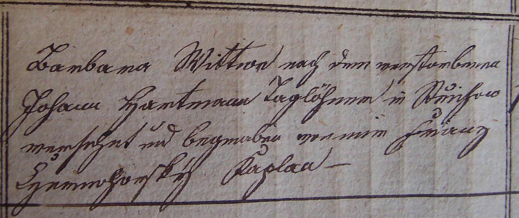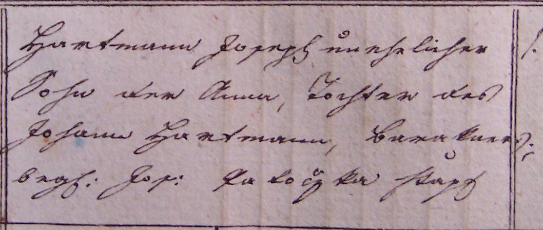 Hartmann Joseph unehelicher Sohn der Anna, Tochter des Johann Hartmann, tady je asi baráčník, ale je to nějaké divně napsané, snad Barackener. Je to člověk vlastnící domek a k němu malý pozemek, podle Ottova slovníku naučného: baráčník "Domkař nebo baráčník, který má jen barák bez polí."