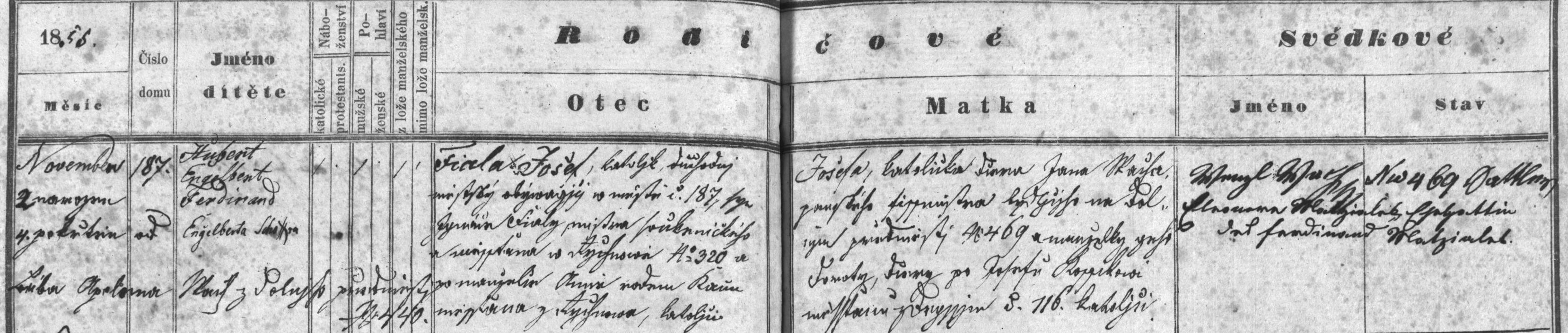 pomohl byste mi prosím někdo s přečtením celého zápisu mého prapraděda Huberta? Jedná se o matriku narození v Litomyšli, prapraděd se narodil 1855. Moc o něm nevím, jen že byl synem Josefa Fialy, městského důchodního v Litomyšli a Josefy roz. Wach. Budu vám vděčná za jakoukoli pomoc, jsem naprostý laik.Předem díky.