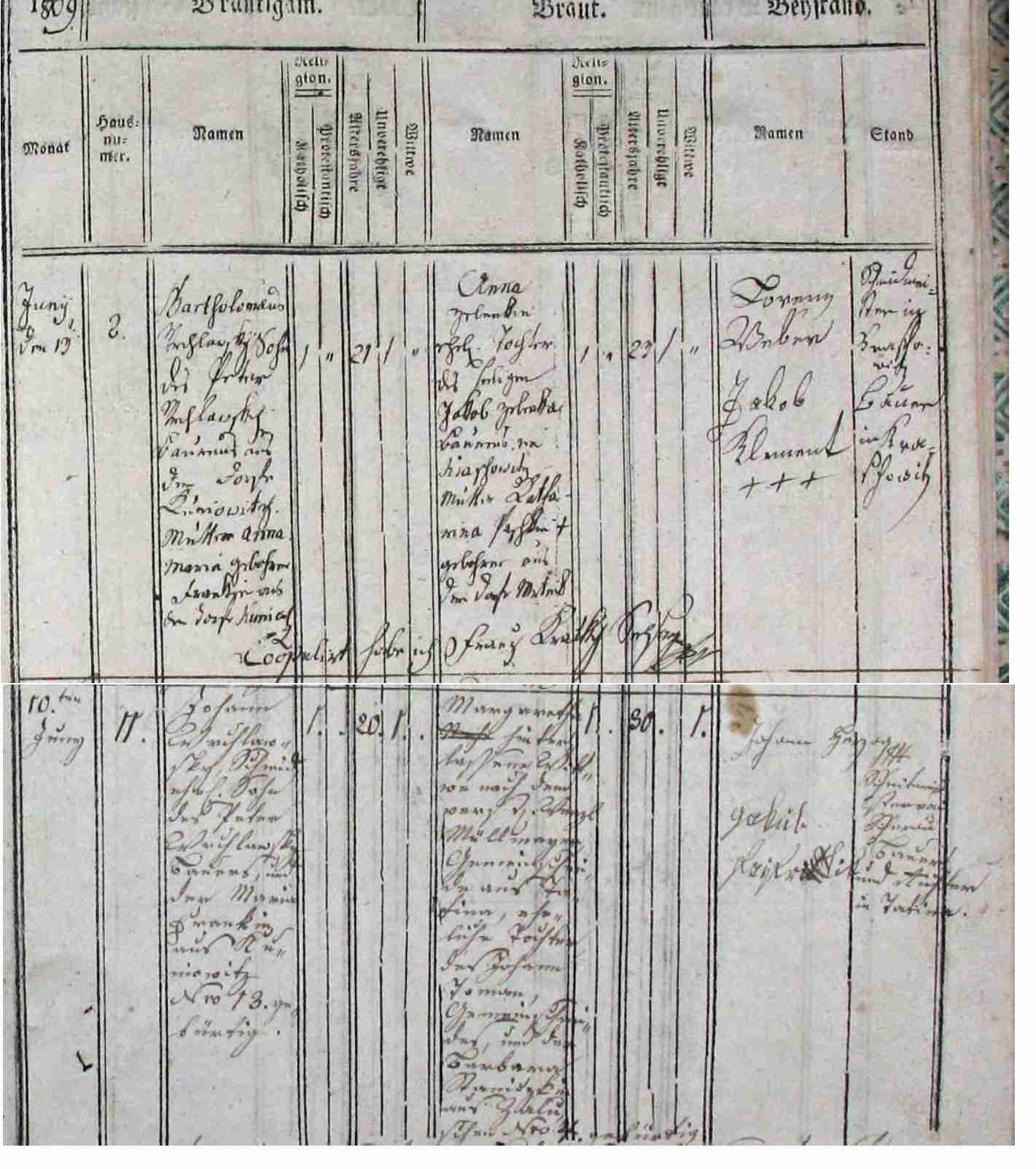 2. 10. června 1817 Jan (Johann)Wrchlavský, kovář, manželský syn Petra Wrchlavského, rolníka a Marie Frankin z Kuňovic č.13 rodem U nevěsty je to složité, ještě se na to podívám |